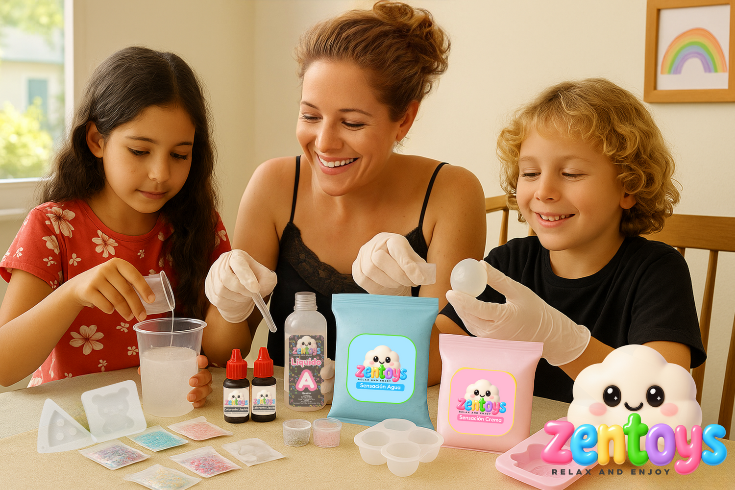 ✨ Nuestros kits DIY incluyen todo lo que necesitas: molde de la figura, líquidos para crear el relleno, colores para darle tu estilo y accesorios decorativos. ¡Crea, personaliza y disfruta tu propia nube apretable única!