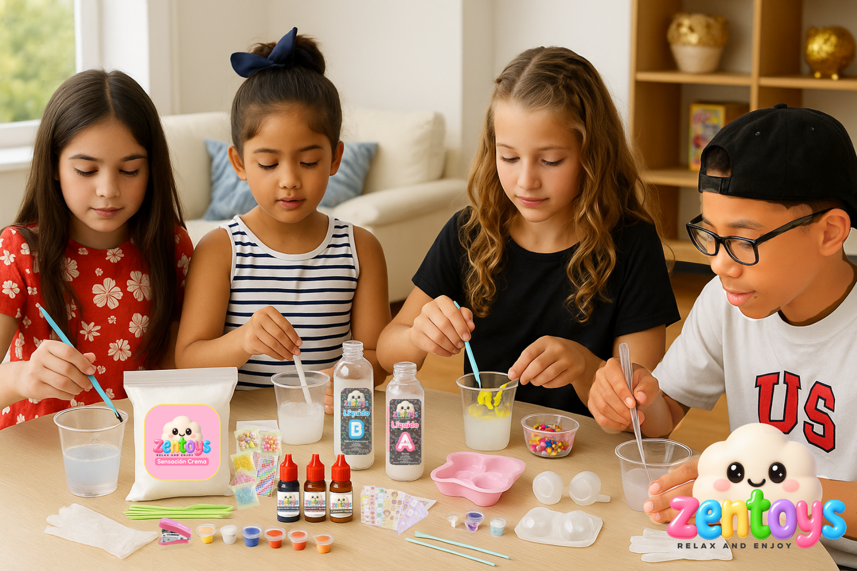 La colección DIY Zentoys® está diseñada para que puedas crear tus propios squishies y juguetes sensoriales, combinando colores, texturas y decoraciones para dar vida a piezas tan únicas como tú. Ideal para pequeños creadores, amantes del arte, o para cualquiera que busque un momento de calma, creatividad y diversión.