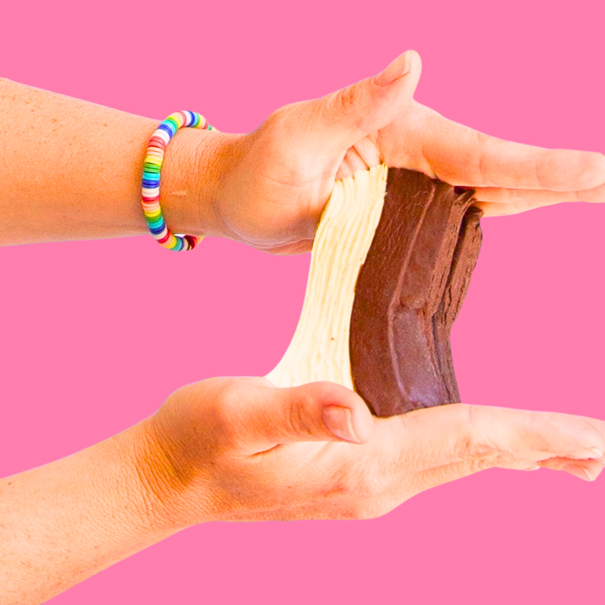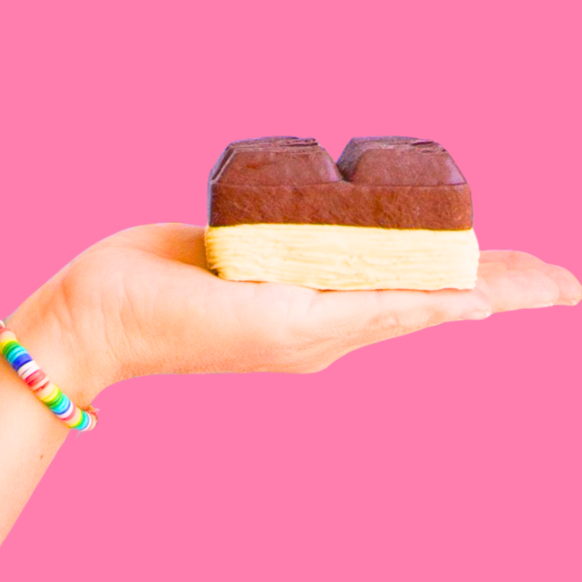 Chocolate Squishy Zentoys es un bloque doble de chocolate sobre una base clara que recuerda a una galleta o pastelito. Su aspecto de postre y su textura acolchada invitan a apretarlo sin culpa todas las veces que quieras por su textura extra cremosa y pegajosa. Perfecto para quienes aman los diseños de chocolate y quieren un juguete antiestrés con look delicioso.